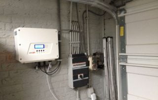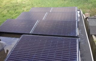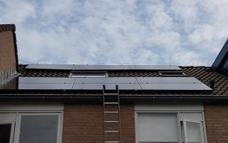 SolarWatt, type 60 Mstyle, glas-glas zonnepaneel black op 2 daken: 2 x 8 x 280 Wp, aangesloten met 2 omvormers SolarEdge SE 2200. Phono Solar (smart, embedded optimizer), 9 zonnepanelen opstelling 3 x 3 zonnepanelen in landscape met SolarEdge. En een string, 6 poly zonnepanelen.