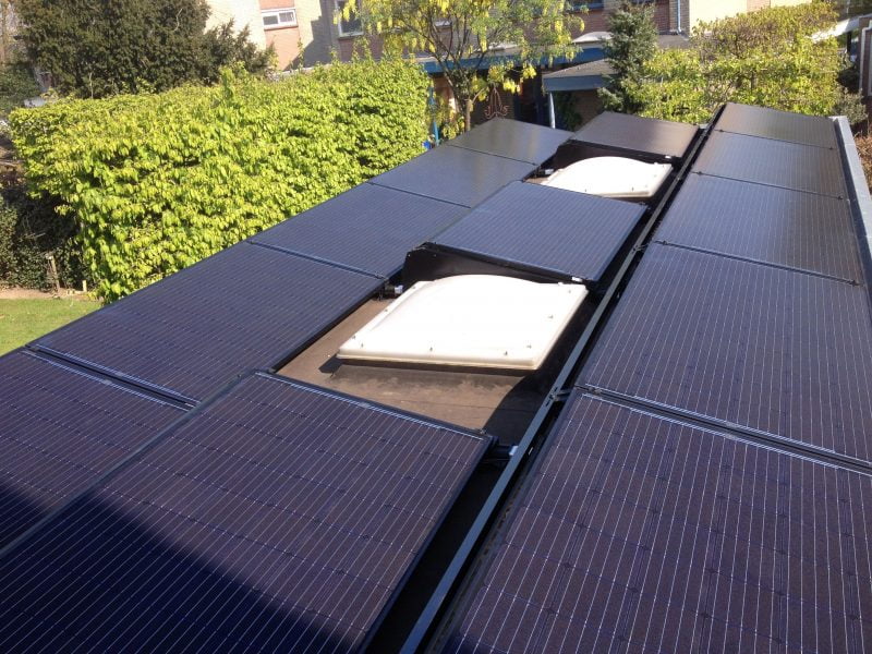 Raamsdonkveer: 5 projecten schuin- en plat dak uitgevoerd met glas-glas zonnepanelen van het merk SolarWatt met een product- en opbrengstgarantie van 30 jaar in combinatie met een parallelle aansluiting van SolarEdge.