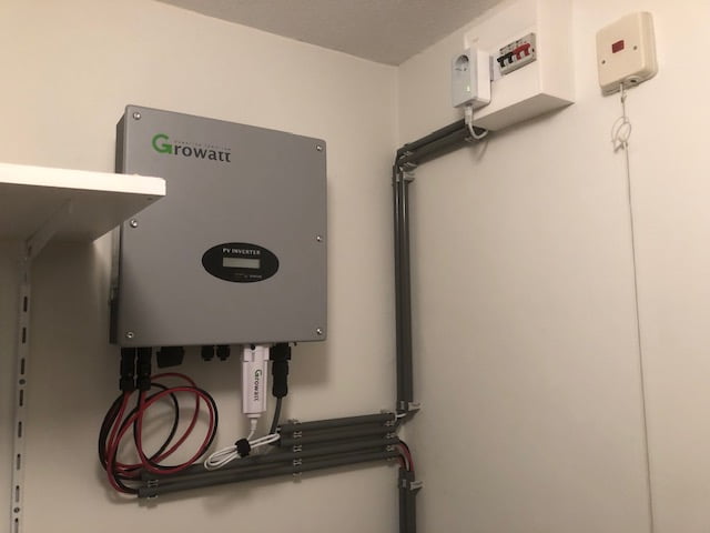 Utrecht: 12 zonnepanelen REC solar 320 Wp uitgevoerd in een dubbele oost-west opstelling met een GroWatt omvormer 1-fase in twee strings.
